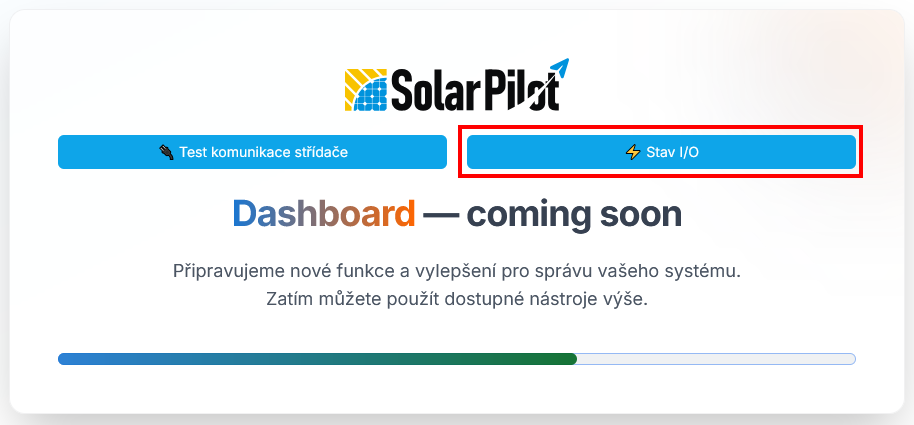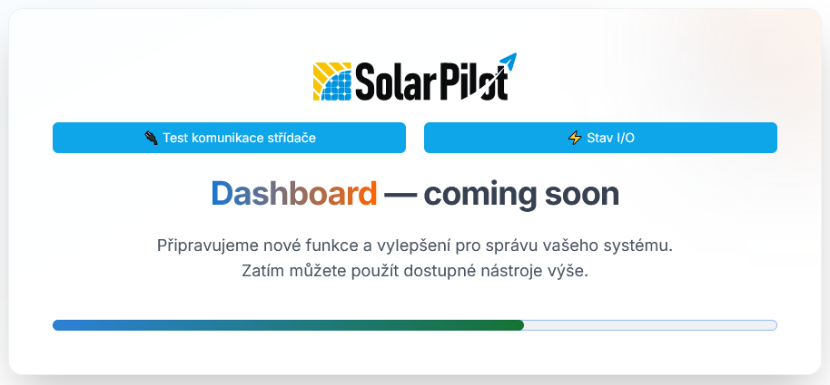 - pokud je řídící jednotka (CU) korektně připojena k lokální síti a síti internet, je možné přejít do lokálního dashboardu pro základní otestování správné komunikace se střídačem