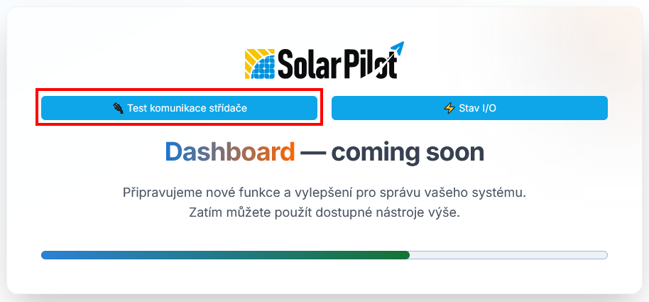 - přejít na stránku s možností testu komunikace se střídačem je možné tlačítkem – Test komunikace střídače (