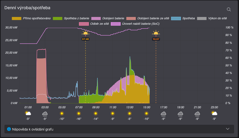- Do grafu Denní výroba/spotřeba byla přidána předpověď počasí a informace o východu/západu slunce (viz Obrázek 2 níže)